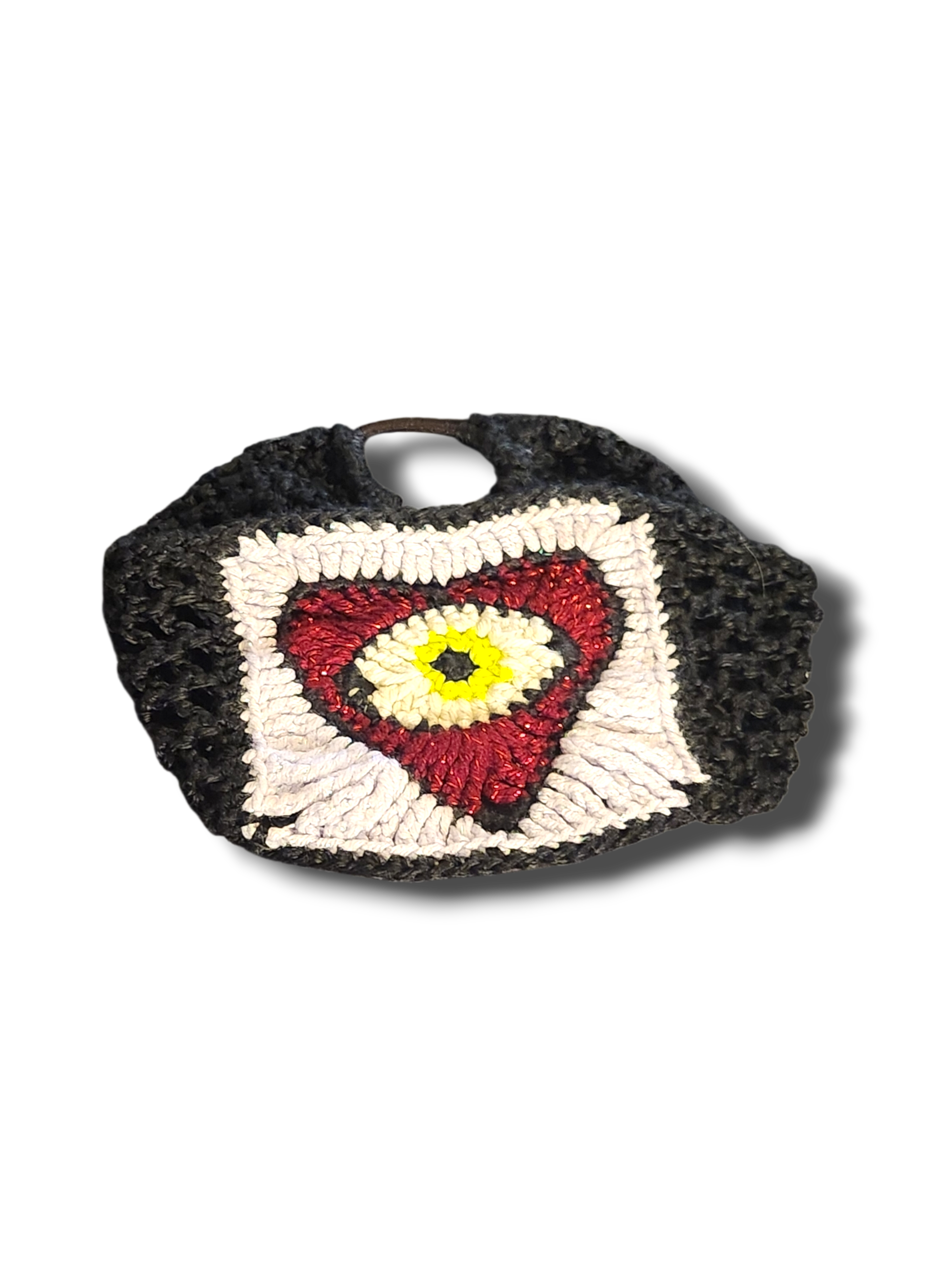 Black textured fiber meets the signature eye motif in cream, crimson, and gold. This headband brings mystical drama to every outfit without trying too hard. Stretchy, soft, and designed for those who see through the bullshit.