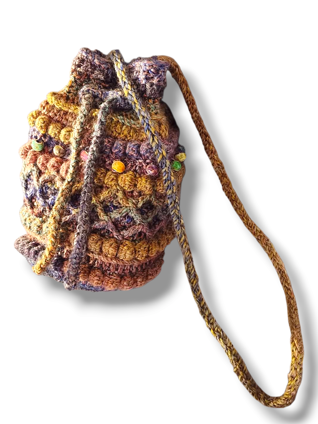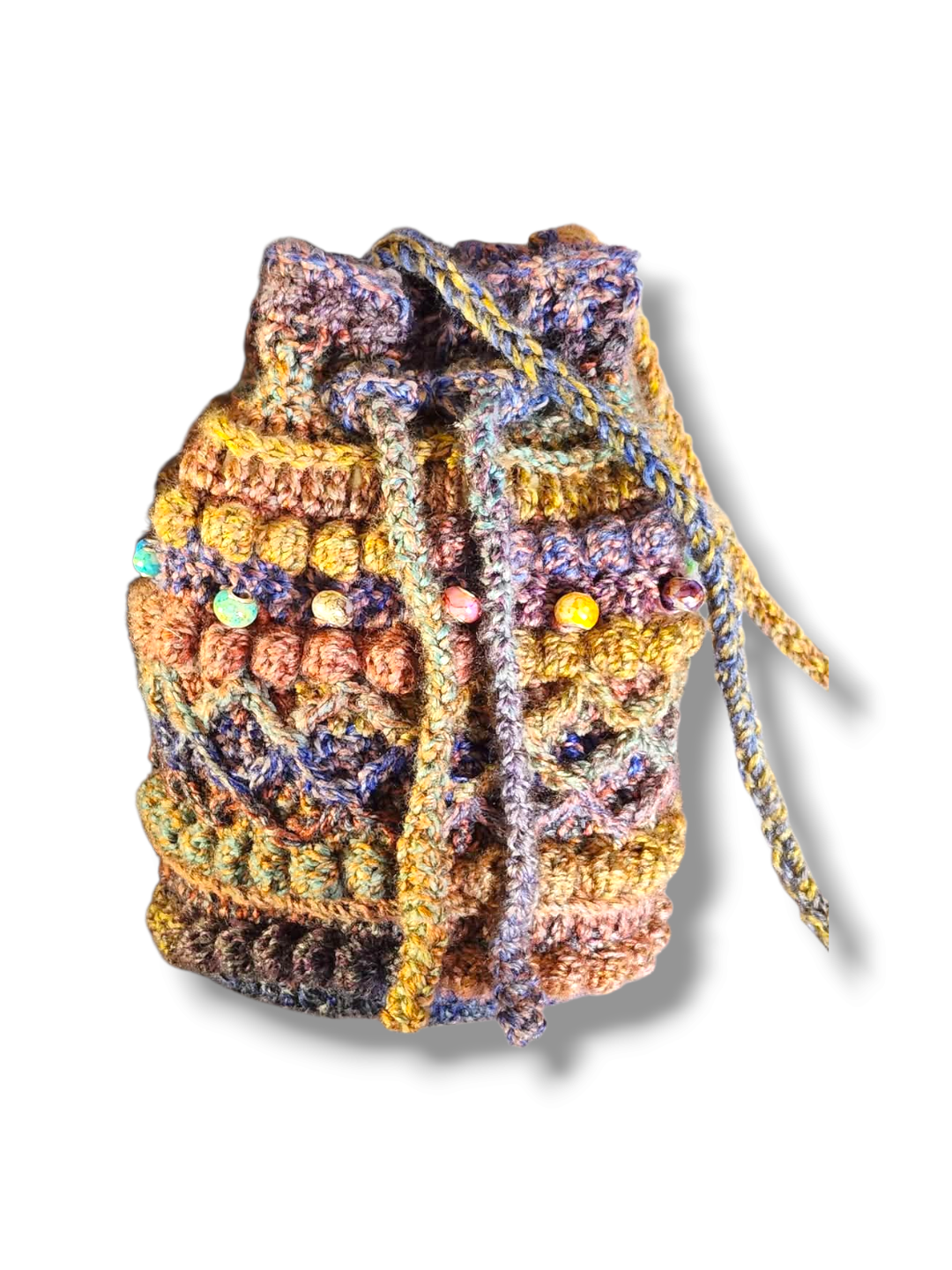Like the warm tones of sun-bleached wood and weathered trails, The Driftwood Daze Satchel blends rustic vibes with vibrant handmade charm. This cozy crossbody satchel is crafted with soft acrylic yarn and detailed with colorful beads for an artful pop of texture. It features a cotton lining for structure and support, a magnetic clasp for added security, and a drawstring closure finished with hand-crocheted ties. The braided strap slips easily over your shoulder for a comfortable, easygoing fit.